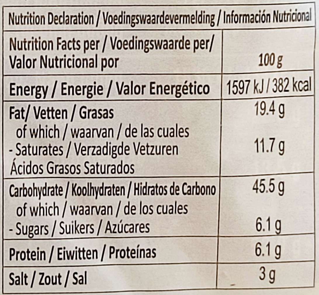 kcal 100 ml/g (Gesamt): | 382 / 439 kcal |