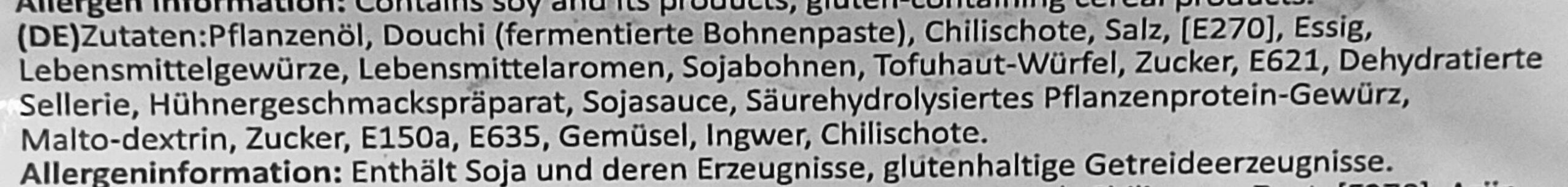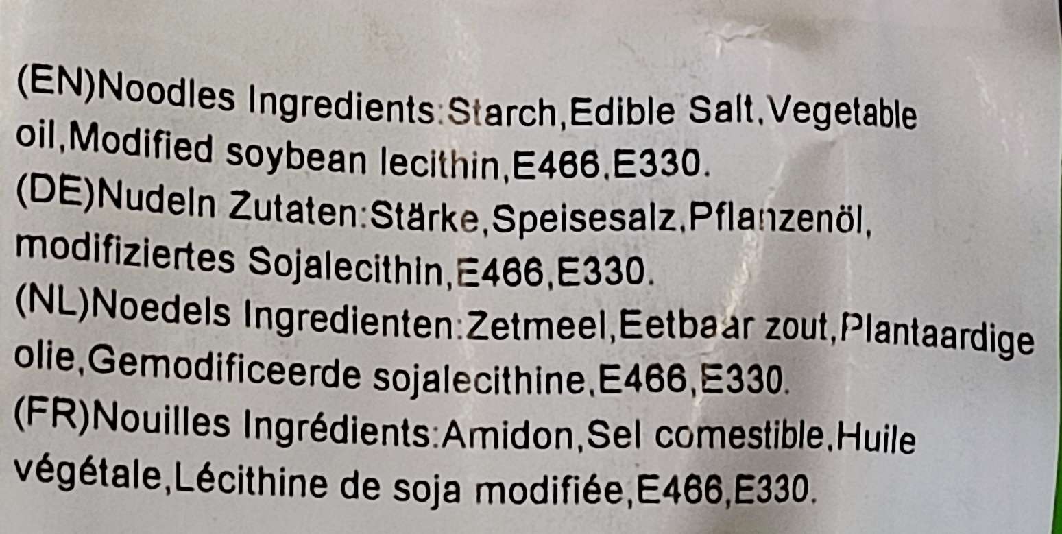 Die Zutatenlisten (die Nudelzutaten wurden auf einem separaten Sticker nachträglich angebracht):