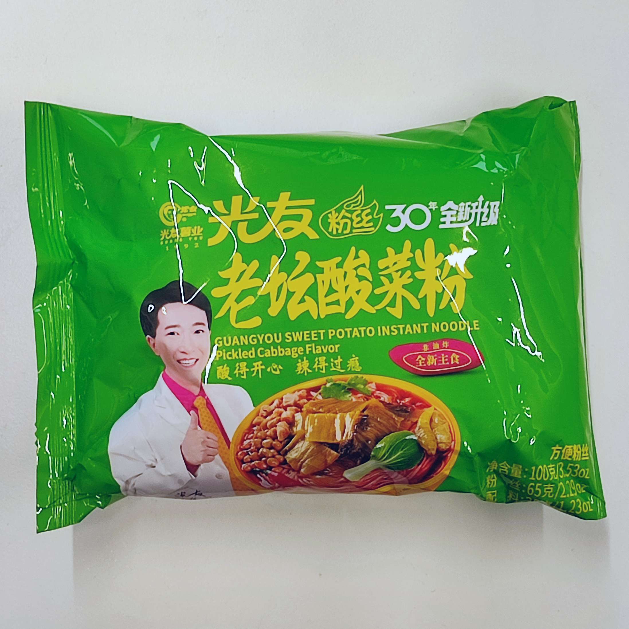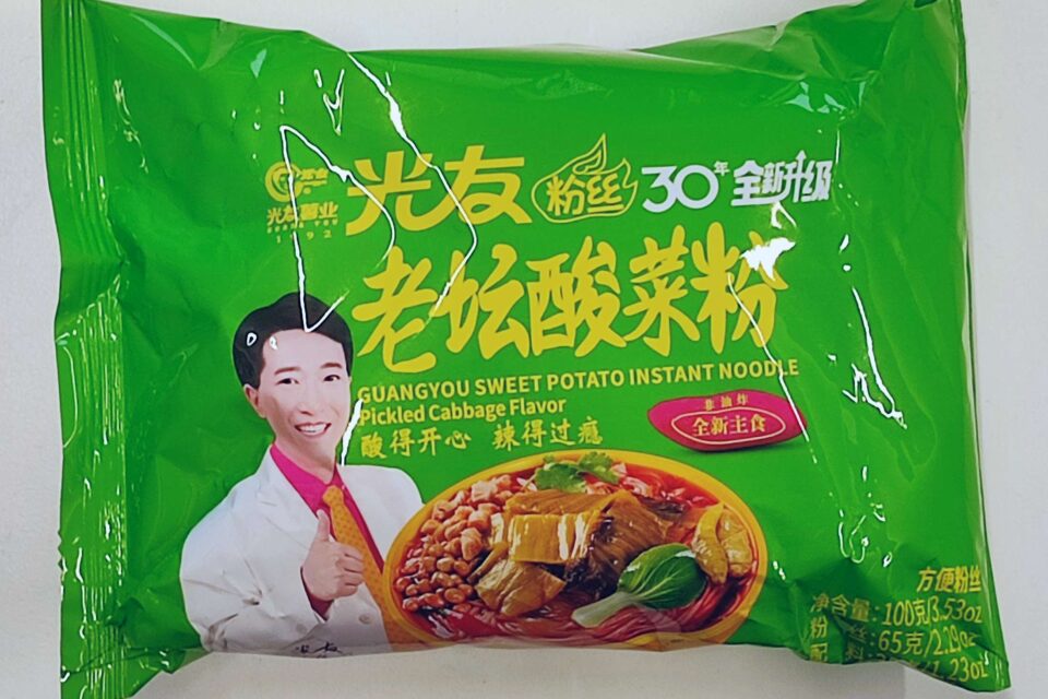 Nach längerer Pause hat sich mal wieder eine Nudelsuppe von Guangyou bei mir eingefunden: Süßkartoffelnudeln mit eingelegtem Kohl. Meine bisherigen Erfahrungen mit Guangyou waren gemischt, ich bin also auf alles gefasst!