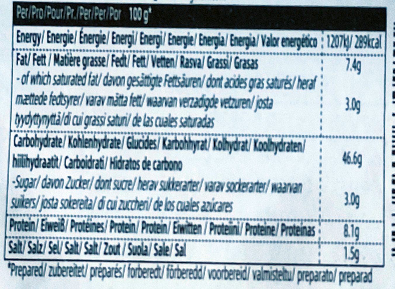 | kcal 100 ml/g (Gesamt): | 289/977 kcal |
