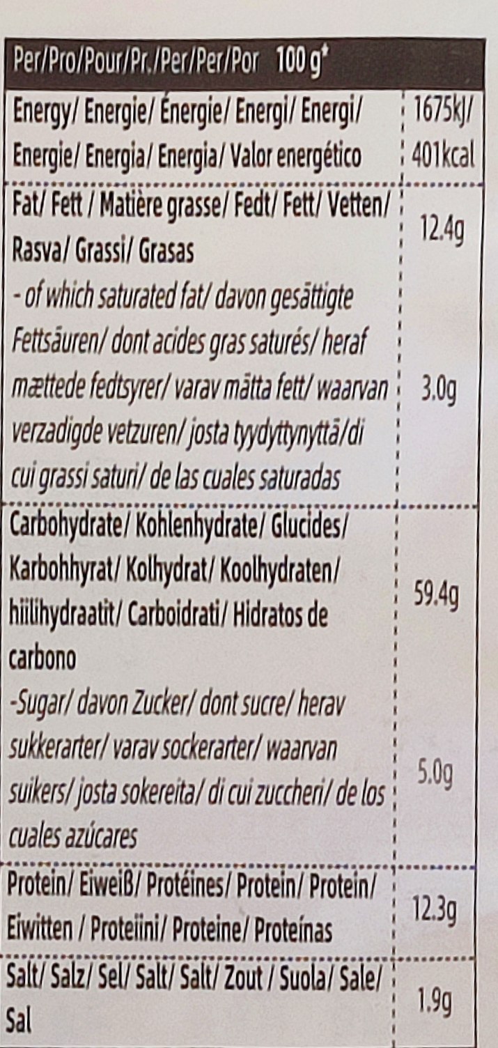 | kcal 100 ml/g (Gesamt): | 401 / 481 kcal |