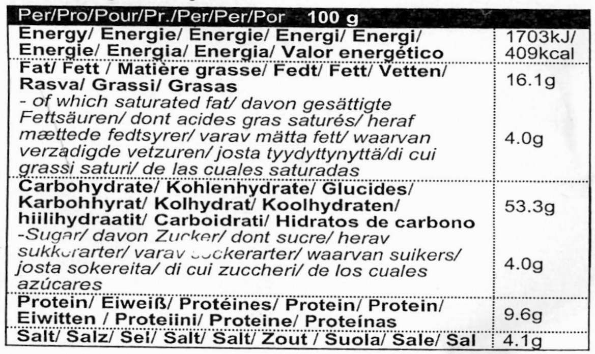 kcal 100 ml/g (Gesamt): | 409 / 483 kcal |