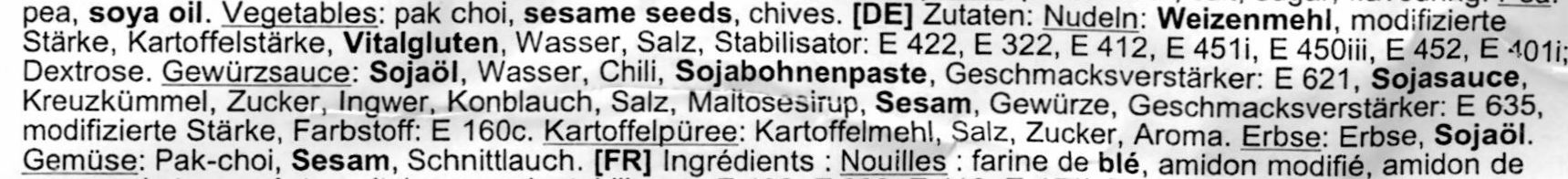Fazit: Die Nudeln sind wie die von Baijia: dünn, elastisch, leicht schwammig, etwas klebrig – in Verbindung mit dem Kartoffelpüree passt das erstaunlich gut. Geschmacklich erinnert mich sehr an die #2855 von Baijia: Zwiebel, Knoblauch und geröstetes Chili, allerdings kommen hier noch geröstete Erbsen dazu: mürbe-knusprig und richtig lecker. Die Schärfe ist knapp nicht mehr allgemeinverträglich. Lecker und gut – wahrscheinlich eine OEM-Version der Baijia-Sorte (mit zusätzlichen Rösterbsen). |