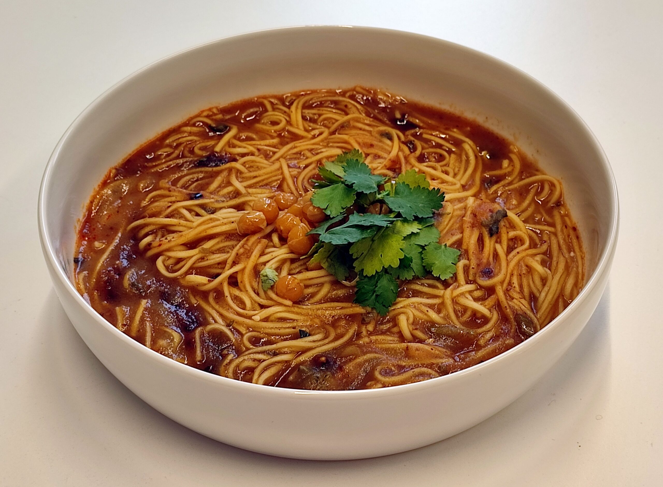 Gerade hat Simon eine Zweitmeinung zu Baijias Nudeln mit Kapü (#2855) gepostet – heute gibt es auch von Haidilao Nudeln und Kartoffelpüree mit Kumin, also ziemlich ähnlich. Schauen wir mal, was die Konkurrenzversion kann.