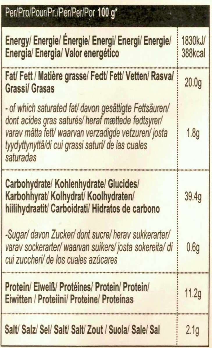kcal 100 ml/g (Gesamt): | 388 / 660 kcal |