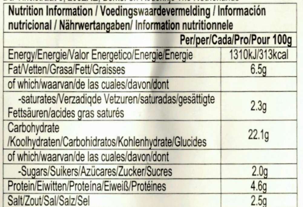 kcal 100 ml/g (Gesamt): | 313 / 570 kcal |