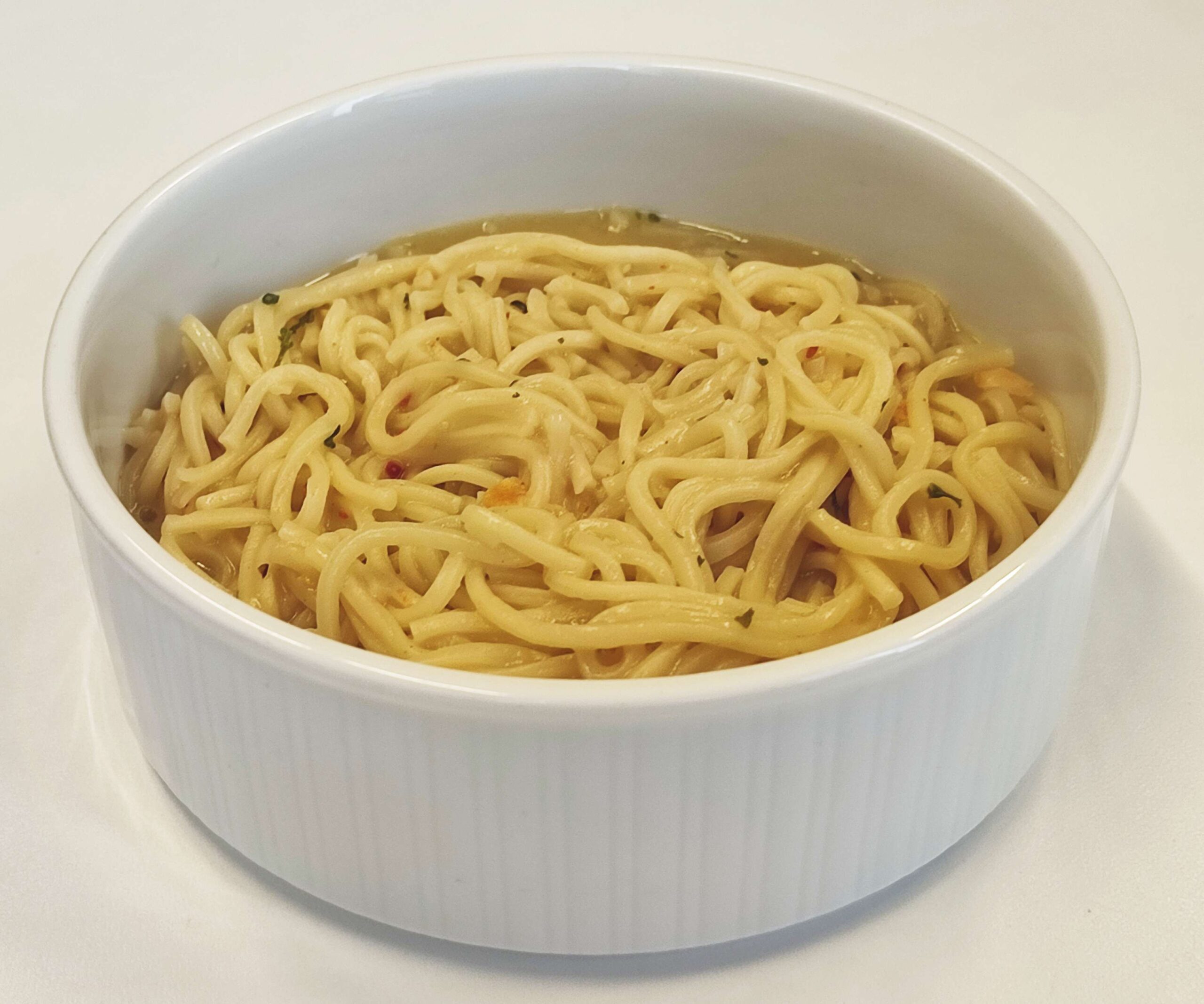 Die luftgetrockneten Nudeln enthalten Kichererbsenmehl, um den Eiweißgehalt zu erhöhen, und Samyang bewirbt die Nudeln als „Protein Pasta!.