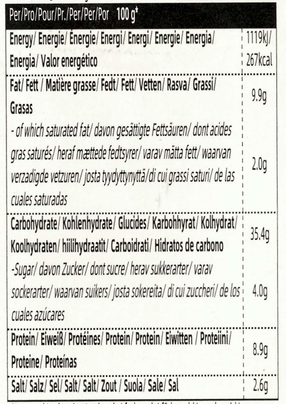 | kcal 100 ml/g (Gesamt): | 267 / 641 kcal kcal |