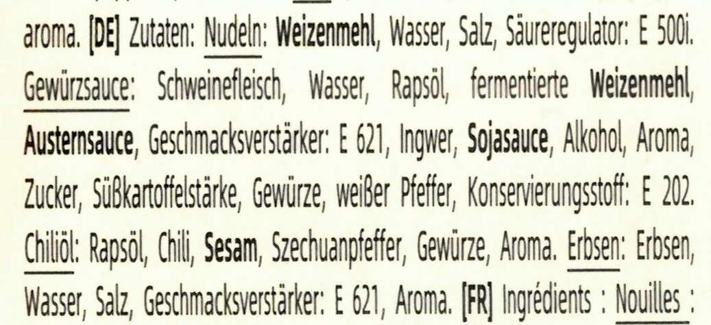 | Produkt: | Dry Stirred Noodles with Peas & Minced Pork |