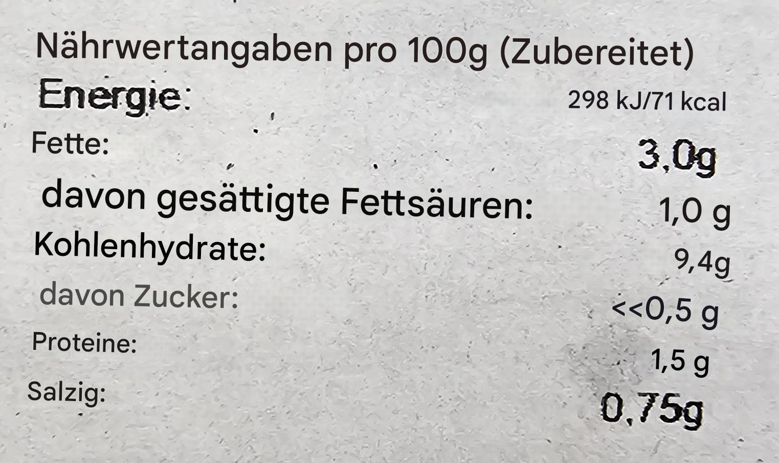 | kcal 100 ml/g (Gesamt): | 71 kcal |