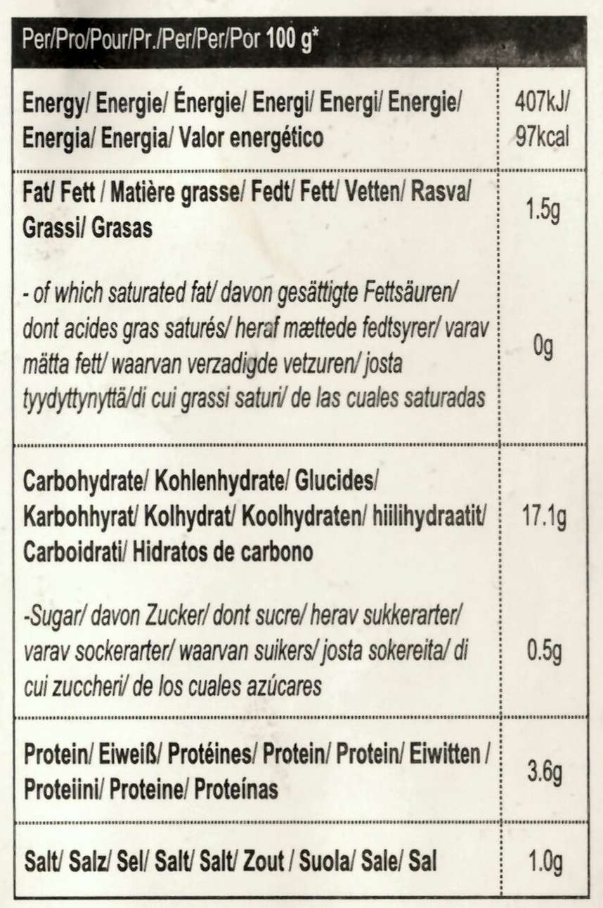 | kcal 100 ml/g (Gesamt): | 97 / 475 kcal |