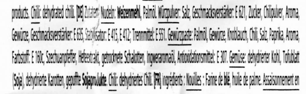 Die Zutatenliste auf dem Importsticker ist eher knapp gehalten, der Originalaufdruck listet einiges mehr, u.a. auch Fleischextrakte.