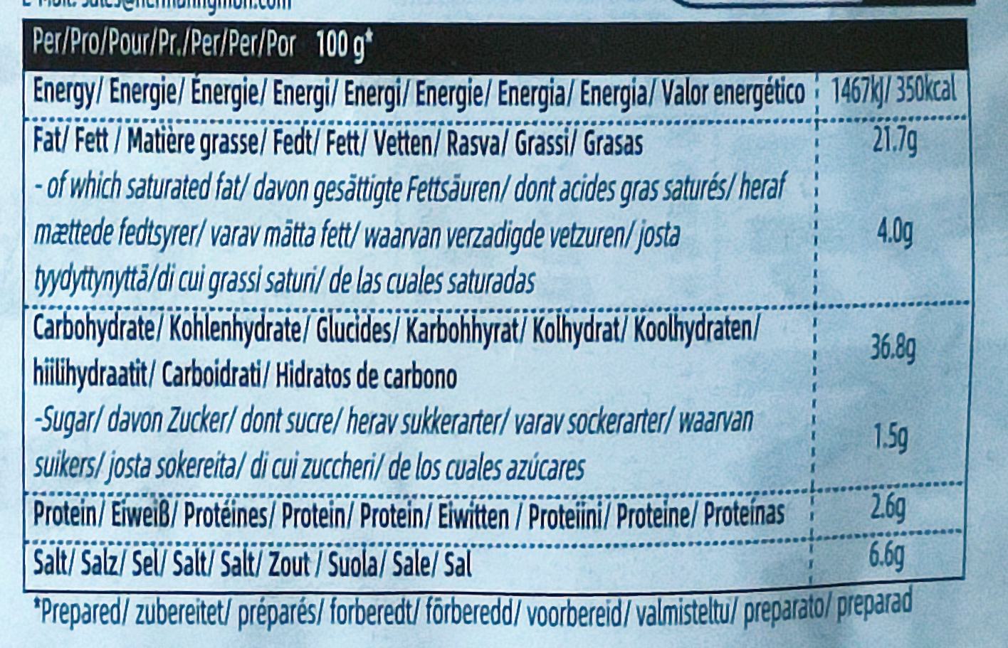 | kcal 100 ml/g (Gesamt): | 350 / 931 kcal |