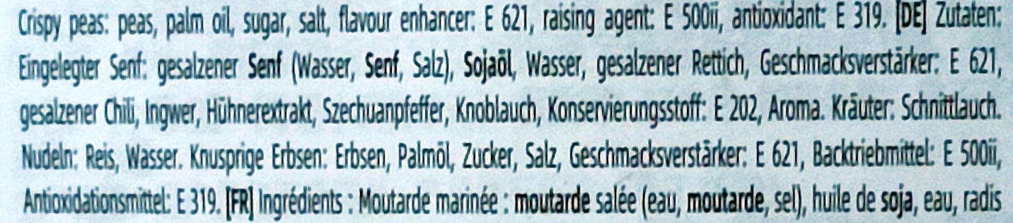 Diese Sorte gibt sich auskunftsfreudiger, auch was die Zubereitung angeht: Reisnudeln ca. 5 Minuten kochen, dann das eingelegte Gemüse und Trockenzwiebeln zugeben und 2-3 Minuten weiterkochen. In eine Schüssel geben und mit den Sojabohnen garnieren – fertig!
