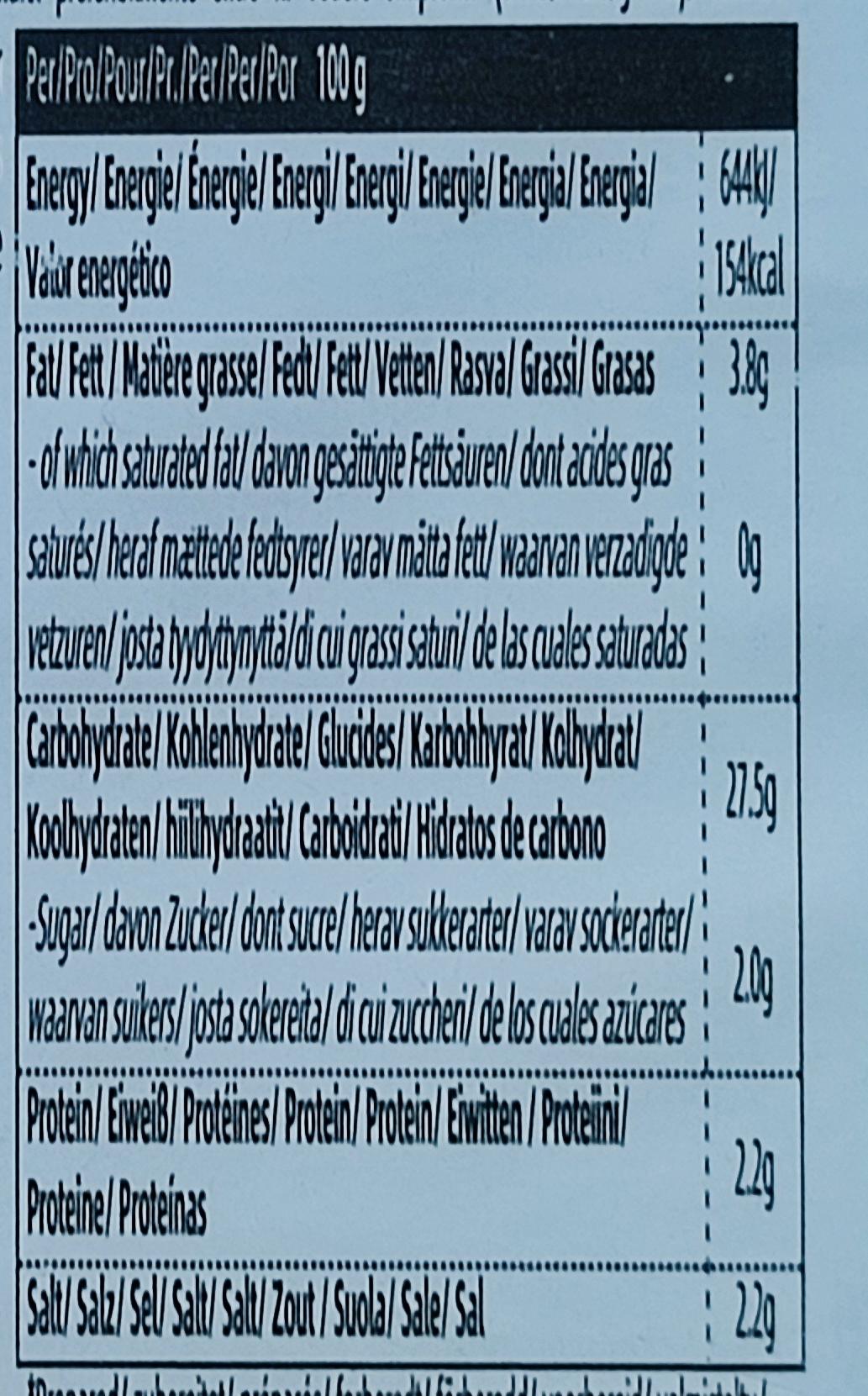 | kcal 100 ml/g (Gesamt): | 154 / 399 kcal |