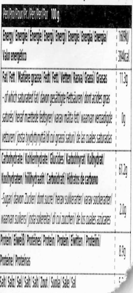 | kcal 100 ml/g (Gesamt): | 384 / 445 kcal |