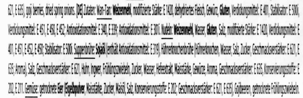 Die Zutatenliste vom winzigst bedruckten Importsticker:
