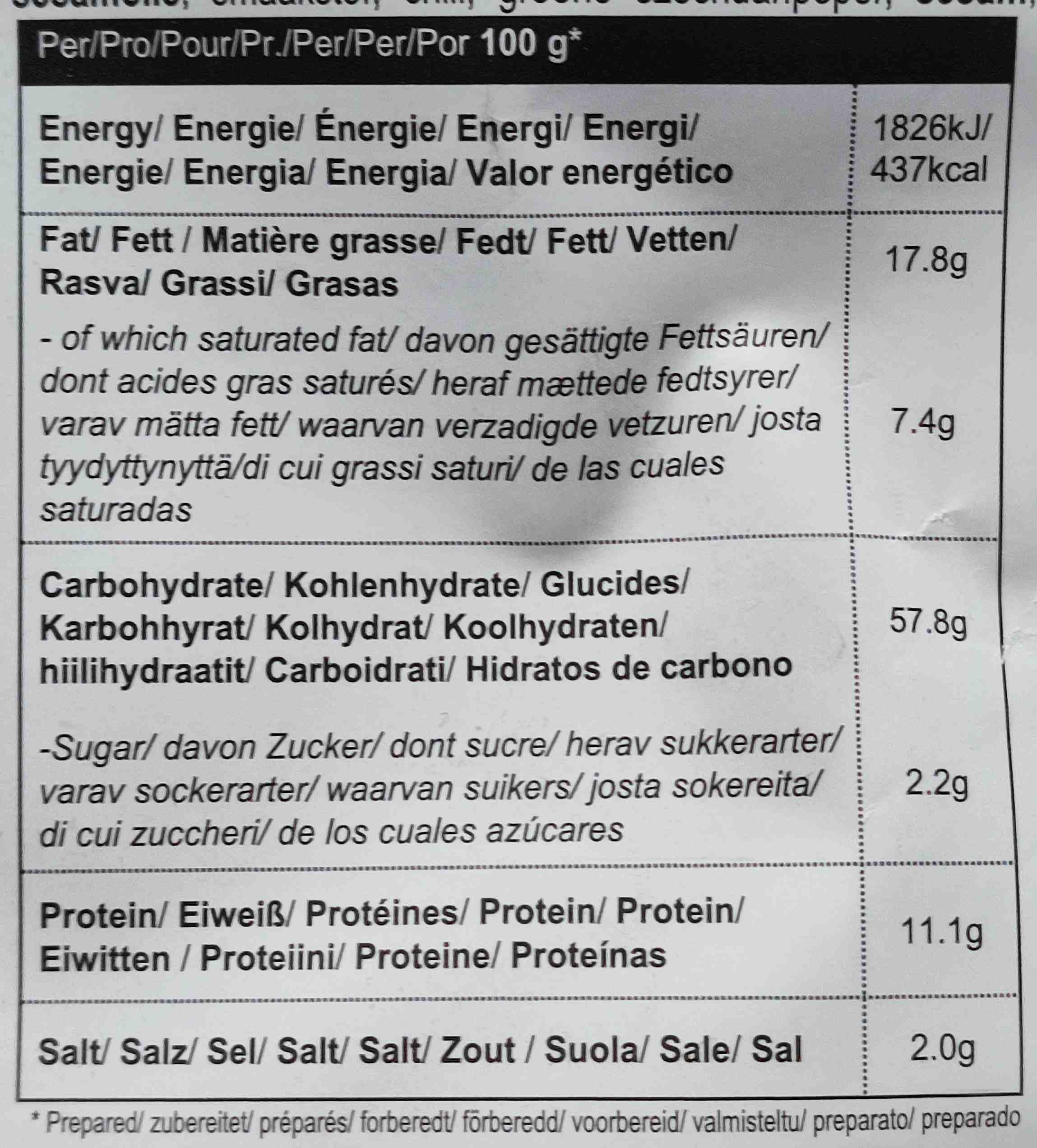 | kcal 100 ml/g (Gesamt): | 437 / 590 kcal |