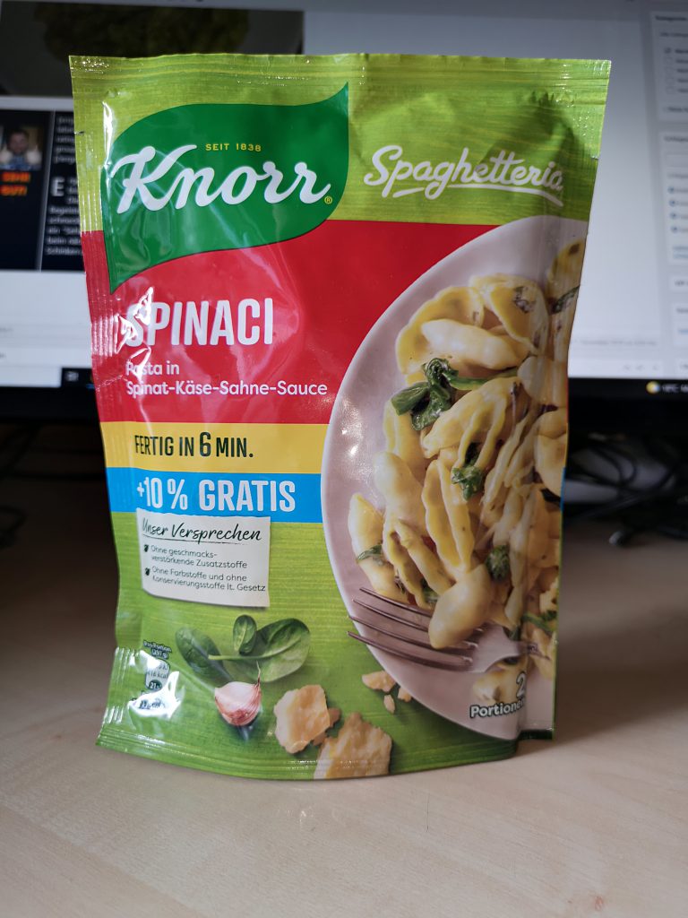 #1695: Knorr Spaghetteria „Spinaci“ (Pasta in Spinat-Käse-Sahne-Sauce) (Update 2022)