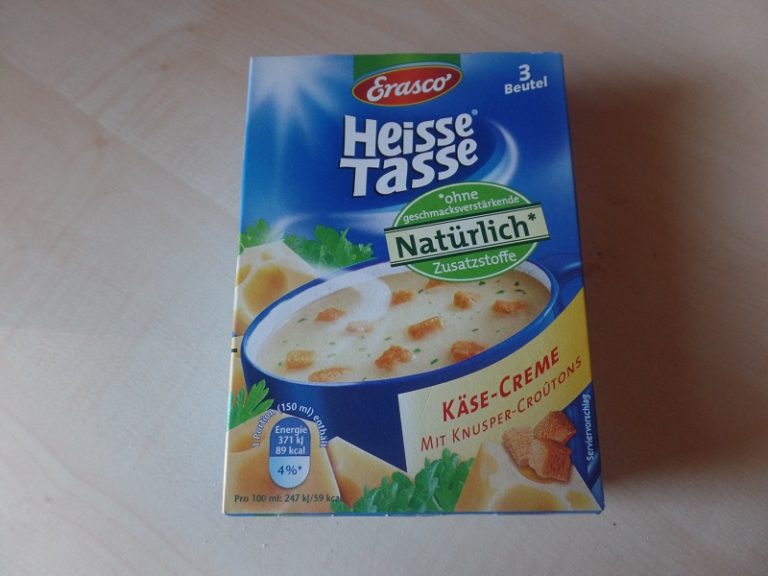 Heute teste ich mal wieder eine Tassensuppe von Erasco. Käse-Creme mit Knusper-Croutons…