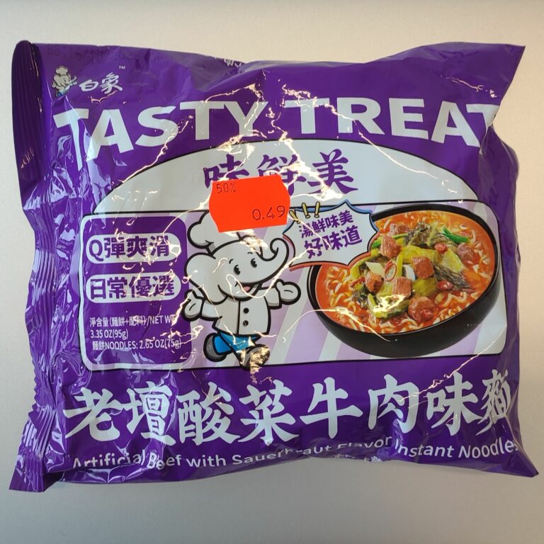 #2677: Baixiang „Tasty Treat Artifical Beef with Sauerkraut Flavor Instant Noodle“ (Update 2024)