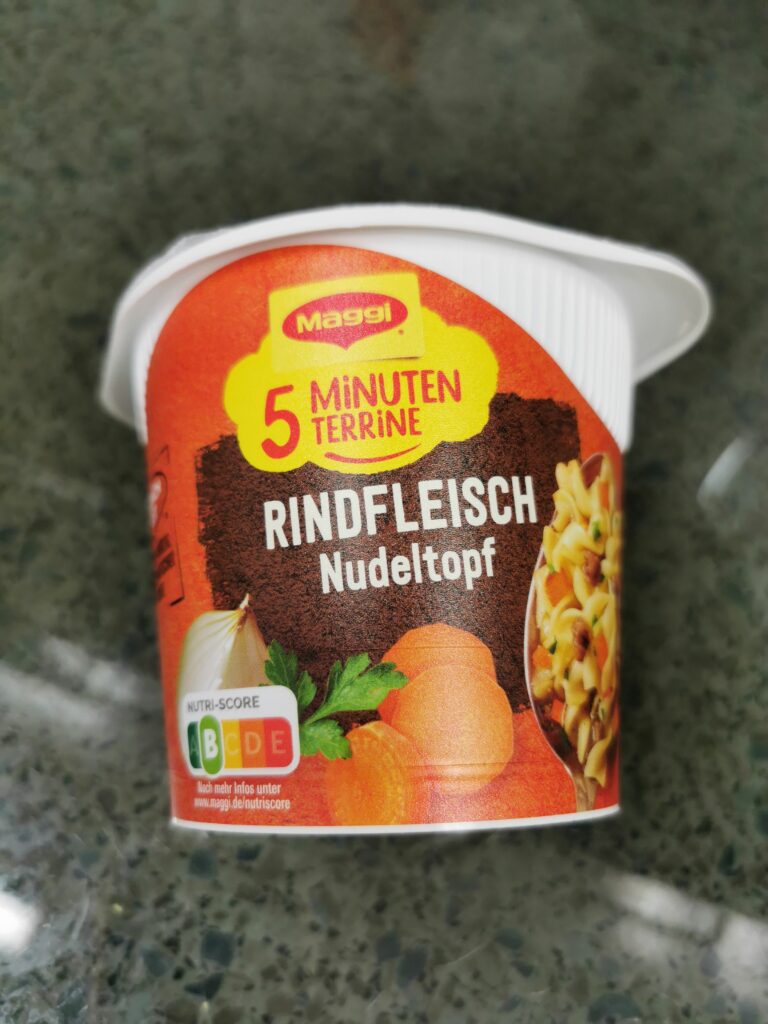 Auch diesen Becher mit Nudeln in dunkler Gulasch-Sauce von Maggi hatten Wir…